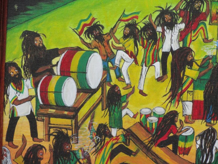 Chanting and Singing: The drumming is inseparable from vocal expressions. Chants often follow a call-and-response pattern. Lyrics typically include biblical psalms, prayers, and traditional Rasta chants focused on themes of liberation and the divinity of Haile Selassie I.