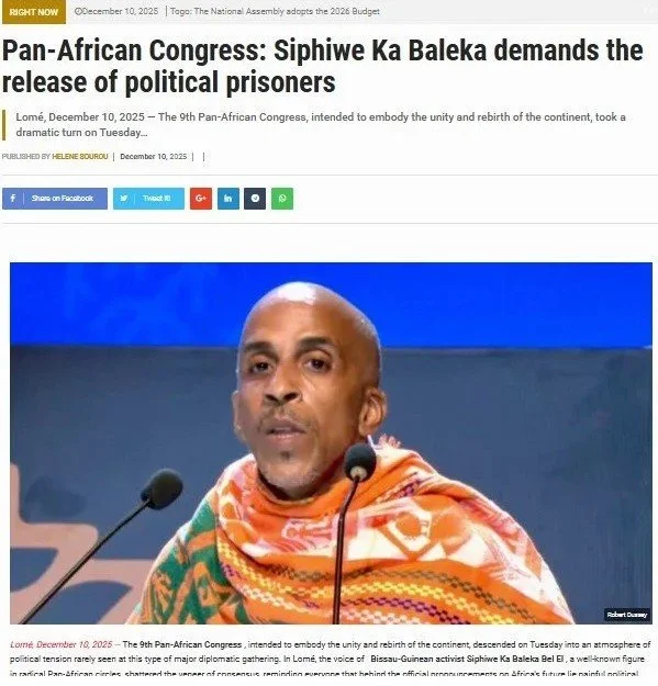 Siphiwe Baleka at the 9th Pan African Congress in Lomé, Togo December 2025