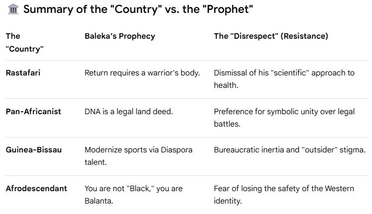 The Irony: He is a "founding father" of their modern sports identity, yet he remains an "outsider" (the American-born Balanta) trying to reform the system from within.