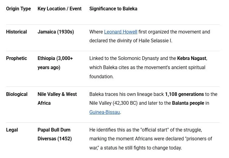For Baleka, the movement began as a desire to return to Ethiopia (the spiritual Zion), but his work has shifted the definition of the "beginning" for individual Rastas. He now argues that the movement truly "begins" for a person when they discover their specific ancestral origin via DNA, moving beyond the general Jamaican-Ethiopian connection to a precise ethnic identity (like the Balanta B'urassa).