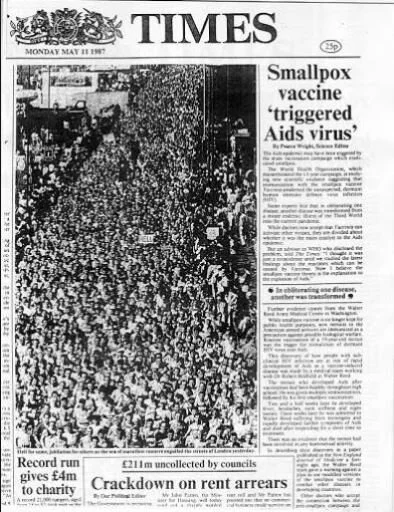 The WHO used smallpox vaccine as their vicious vehicle to spread the AIDS virus and the geographic areas chose were Uganda, and other African countries, Haiti, Brazil and Japan. The present "AIDS epidemiology coincides with these geographic areas." According to the London Times article from May 11, 1987 by science editor Pearce Wright entitled ‘Smallpox vaccine 'triggered Aids virus':