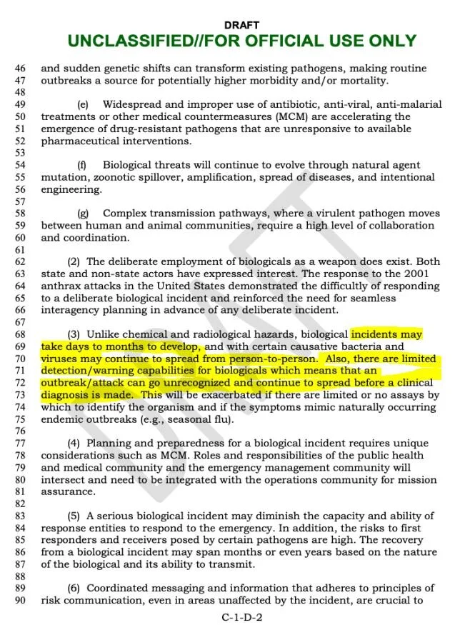 "Molecular biology is a field that is advancing very rapidly, and eminent biologists believe that within a period of 5 to 10 years it would be possible to produce a synthetic biological agent, an agent that does not naturally exist and for which no natural immunity could have been acquired...a new infective microorganism which could differ in certain important aspects from any known disease-causing organisms. Most important of these is that it might be refractory [resistant] to the immunological and therapeutic processes upon which we depend to maintain our relative freedom from infectious disease...A research program to explore the feasibility of this could be completed in approximately 5 years at a total cost of $10 million."