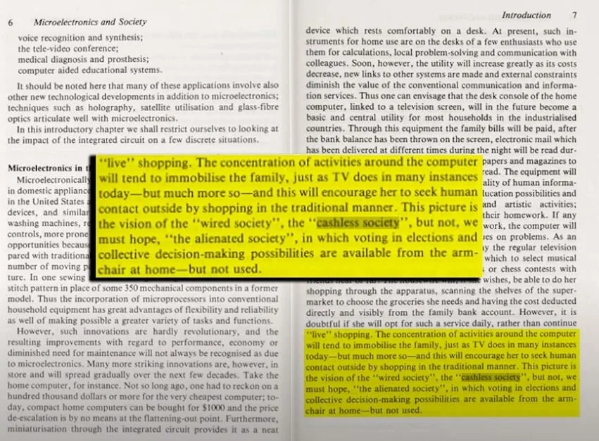 1982 - Gunter Friedrichs and Adam Schaff publish the book, MICROELECTRONICS and SOCIETY: For Better or For Worse: A Report to the Club of Rome.