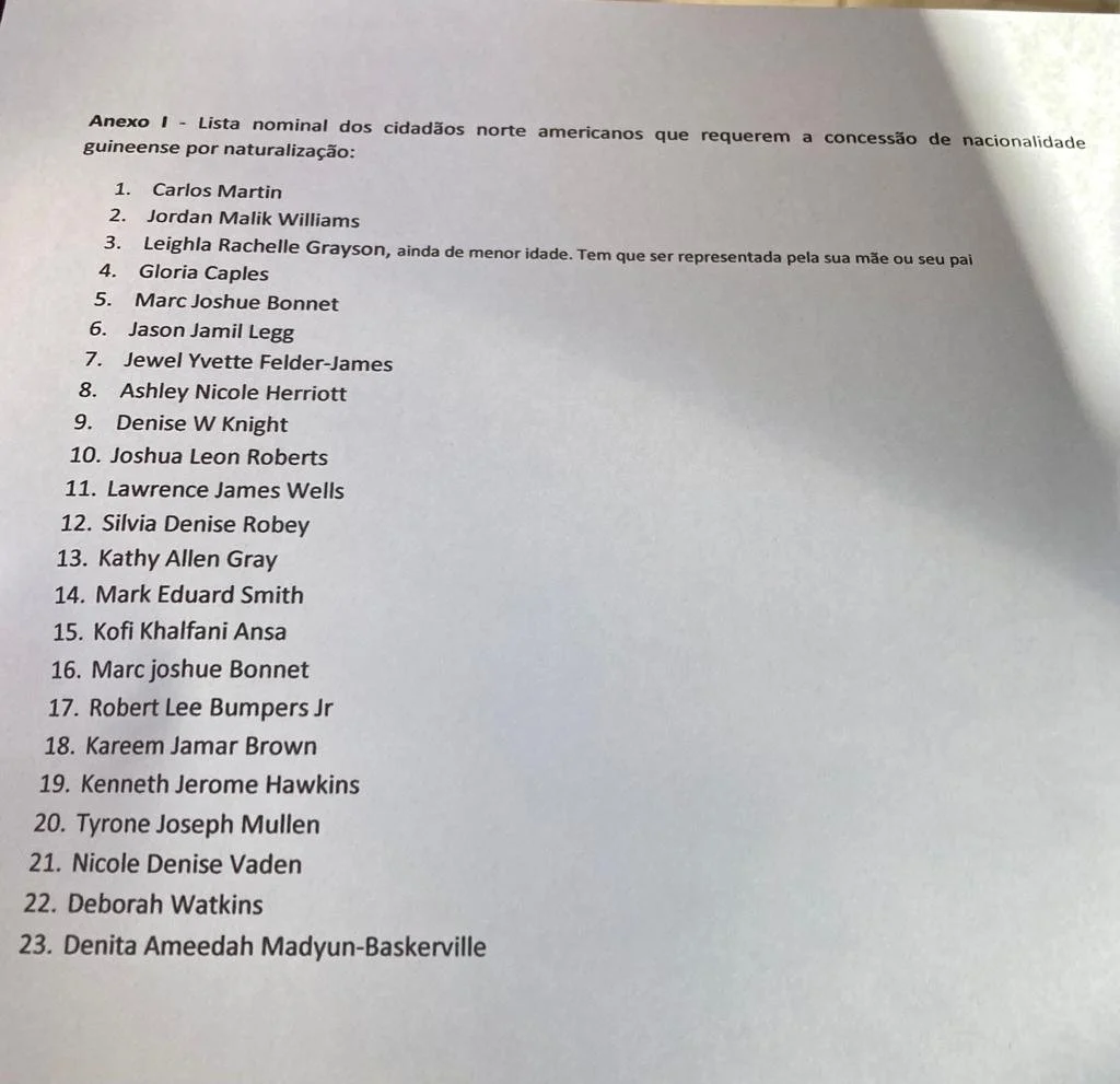 On 29/04/2022, we received the letter Rel. CPM/282/mc/2022, a request for the acquisition of Guinean nationality for African-Americans descending from Guinea Bissau, previously authorized by Your Excellency, was sent to my office. In this consonance, and completing the formalities for the purpose of attributing nationality, we request Your Excellency to be worthy, on an exceptional basis, to grant the waiver of payment of the relevant fees, since they involve relatively large sums (770,482.00 x 23 persons), whose payments should be made directly at the Single Office of the Public Treasury.