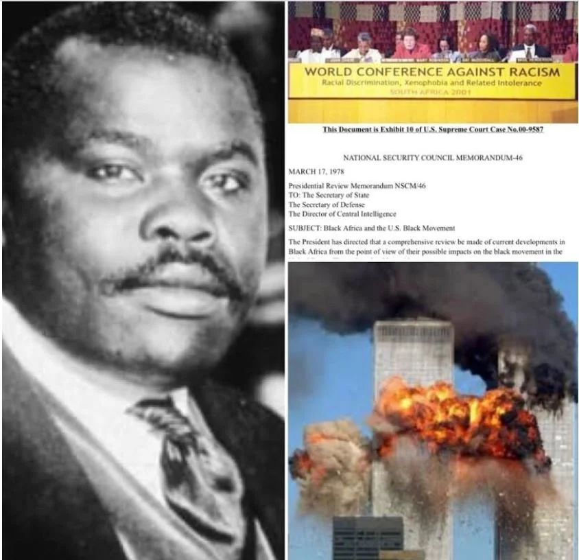 Marcus Garvey's prophecy about a great inter-racial conference came true in late August 2001 at the convening of the World Conference Against Racism (WCAR) in Durban, South Africa. On September 3, 2001, 18,810 delegates from 170 countries, 16 heads of state, 58 foreign ministers, 44 ministers, 7,000 non-governmental representatives, and 1,300 journalists attending the World Conference Against Racism, Racial Discrimination, Xenophobia and Related Intolerance (WCAR) declared that "slavery, and the slave trade, including the Trans-Atlantic Slave Trade, were appalling tragedies in the history of humanity not only because of their abhorrent barbarism but also in terms of their magnitude, organized nature [and] especially their negation of the essence of the victims . . . [and] that slavery and the slave trade area crime against humanity..." At the conference, on September 2, 2001, in a meeting with United Nations High Commissioner for Human Rights Mary Robinson, Congresswoman Cynthia McKinney presented Robinson with two documents as evidence of the US government's violations of both US and international law and, in particular, specific violation of the International Convention on the Elimination of Racial Discrimination. The first document given to Robinson was a confidential memorandum 46, written by National Security Advisor, Zbigniew Brzezinski on March 17, 1978 and it details the federal government's plan to destroy functioning black leadership in the United States. This document provides a critical insight into the federal government's concern at the apparent growing influence of the African American political movement. The second document is a report entitled "Human Rights in the United States [The Unfinished Story - Current Political Prisoners - Victims of COINTELPRO]" and it was compiled by the Human Rights Research Fund, headed by Kathleen Cleaver. This document provides an overview of the counterintelligence program which, from the 1950s to the 1980s, was run in the United States against political activists and targeted organizations. The United States delegation, led by Deputy Assistant Secretary of State Michael Southwick, was promptly ordered to withdraw by U.S. Secretary of State Colin Powell, and the US Delegation officially walked out of the World Conference Against Racism on September 3, 2001. Eight days later, on Ethiopian New Year’s Day, the World Trade Center was destroyed, fulfilling Marcus Garvey’s “until Dooms Days” prophecy along with Revelations 18.