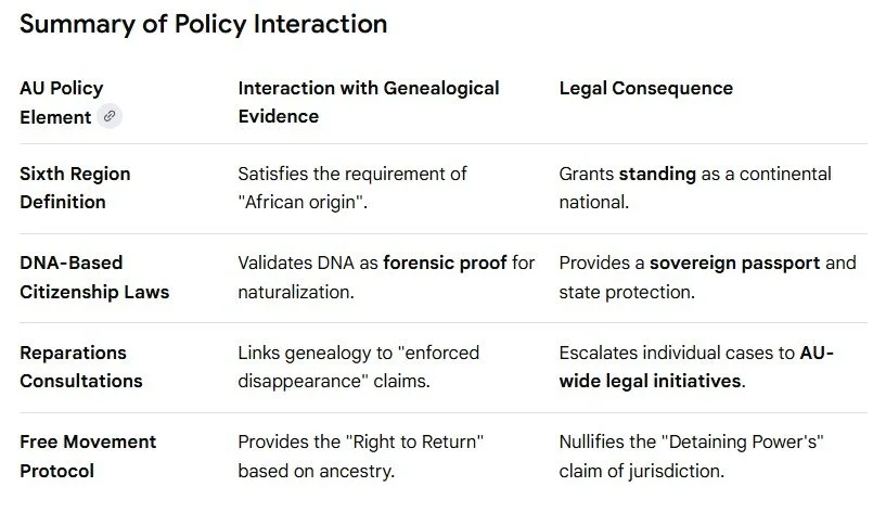 The Interaction: Baleka’s genealogical evidence identifies his specific "ancestral birthright" (the Balanta people). He argues that the Sixth Region policy, combined with IHL, creates a mandatory obligation for the AU to facilitate his return and the restoration of his rights.